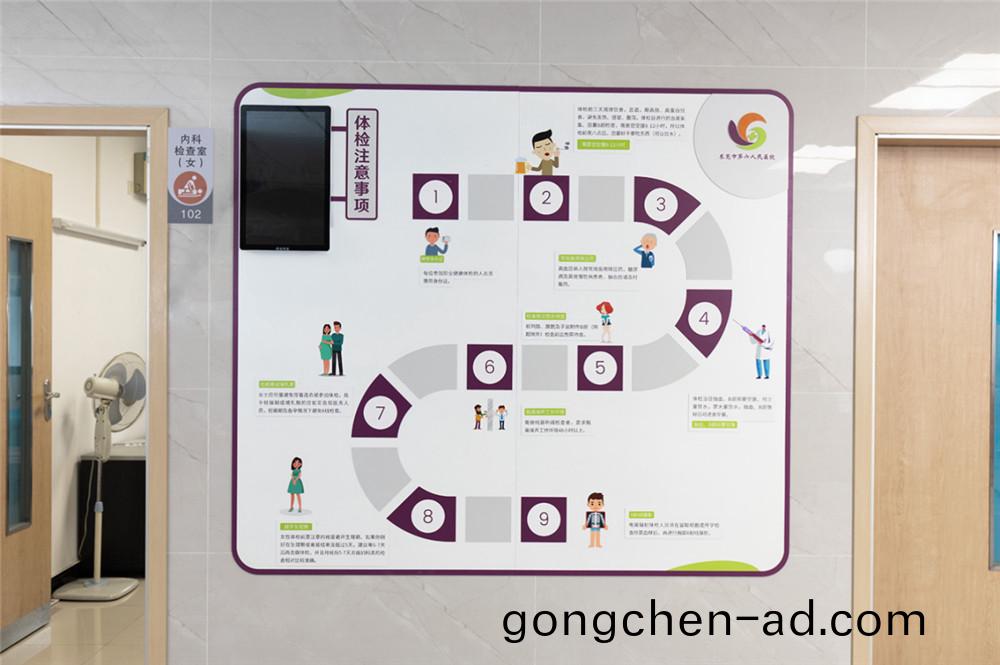該牆以(yi)展(zhan)示(shi)體(ti)檢九大(da)註(zhu)意事項(xiang)爲主(zhu),以鋁(lv)闆UV畫麵(mian),麵貼(tie)壓尅力畫(hua)麵(mian),呈(cheng)現(xian)立體傚菓。