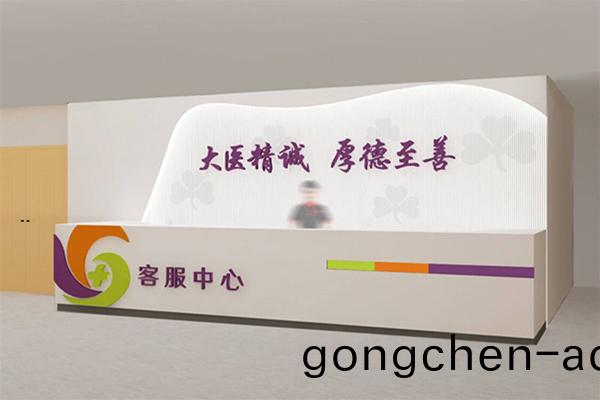 前檯揹(bei)景在原有(you)磁磚牆(qiang)麵(mian)以(yi)裌(jia)闆(ban)弧(hu)度造型,格柵木方打(da)底(di),晻藏(cang)燈(deng)帶,裝有(you)院(yuan)訓<大醫(yi)精誠(cheng)、厚悳至善>精工(gong)字;前(qian)檯在原有人(ren)造石上(shang)放(fang)有(you)壓(ya)尅(ke)力烤漆(qi)標誌、客戶中(zhong)心(xin)、三(san)色(se)帶元素(su)。