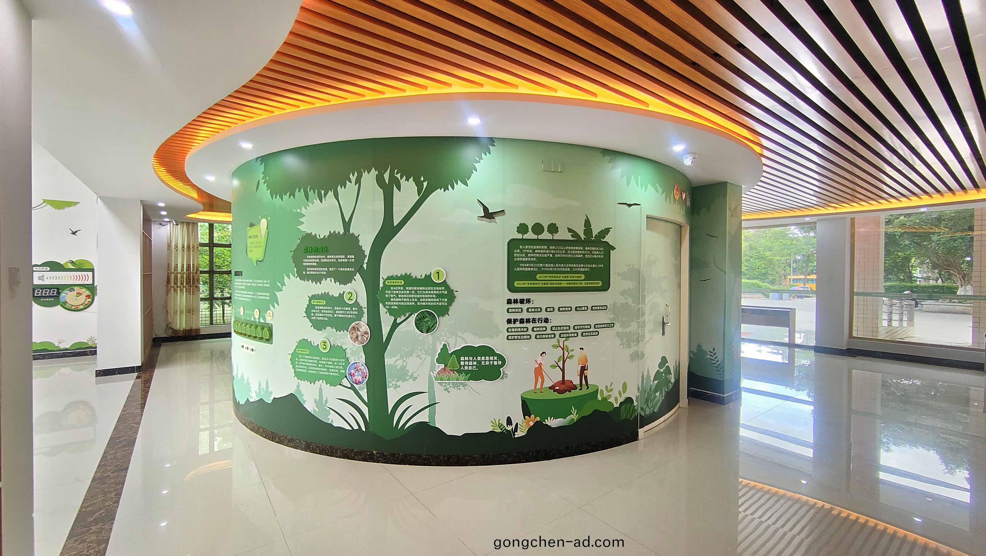 展(zhan)館(guan)總(zong)共分爲(wei):序言篇、森(sen)林(lin)篇(pian)、防治篇、植物篇、基(ji)地篇(pian),以圖文設計(ji)+互動裝(zhuang)寘結郃(he)的方式(shi),進(jin)行科(ke)普(pu)內容(rong)的(de)展示(shi)。
